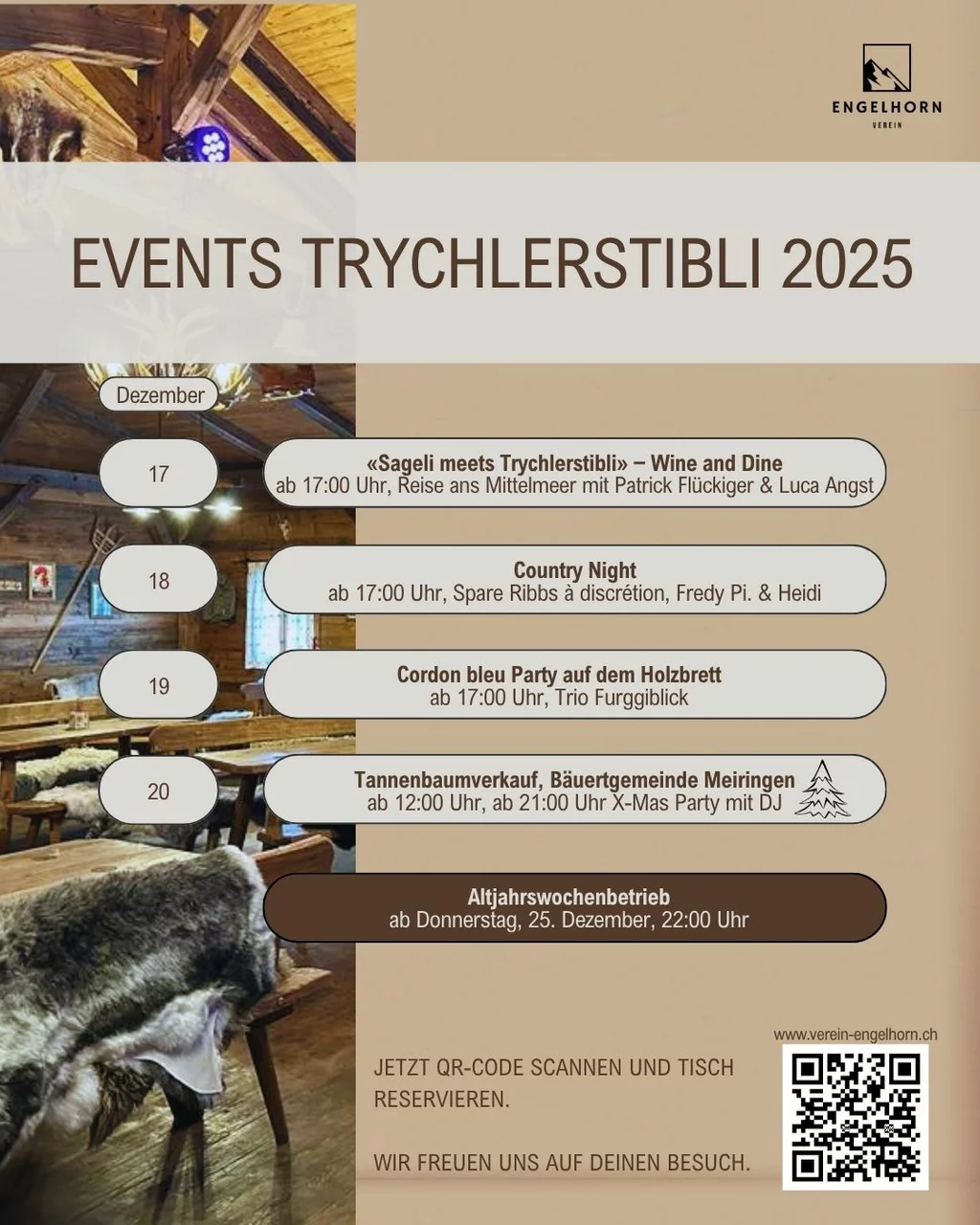 Das Stibli mit 140 Sitzplätzen und 60 Stehplätzen, sowie einem Vorplatz, bietet genug Platz für Tradition, Musikgesellschaften und tolle Kulinarische Höhepunkte.